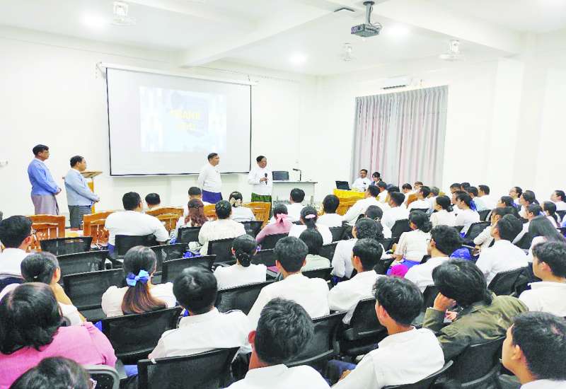MSME ကဏ္ဍတွင် အလုပ်အကိုင်အခွင့်အလမ်းများရရှိရေး၊ MSME လုပ်ငန်းများဖွံ့ဖြိုးတိုးတက်ရေး၊ စွန့်ဦးတီထွင်မှုများဆောင်ရွက်နိုင်ရေး ဆွေးနွေးပွဲကို ယနေ့နံနက်ပိုင်းတွင် Naypyitaw State Polytechnic University သင်တန်းခန်းမ၌ကျင်းပရာ စက်မှုဝန်ကြီးဌာန ပြည်ထောင်စုဝန်ကြီး ဒေါက်တာချာလီသန်း၊ သိပ္ပံနှင့်နည်းပညာဝန်ကြီးဌာန ပြည်ထောင်စုဝန်ကြီး ဒေါက်တာမျိုးသိန်းကျော်၊ ဌာနဆိုင်ရာတာဝန်ရှိသူများ၊ Naypyitaw State Polytechnic University ပါမောက္ခချုပ်၊ ဆရာဆရာမများ၊ ကျောင်းသား ကျောင်းသူများ၊ MSME လုပ်ငန်းရှင်များနှင့် တာဝန်ရှိ သူများ တက်ရောက်ကြသည်။