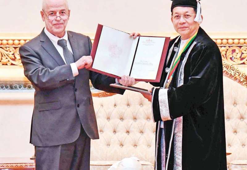 နိုင်ငံတော်စီမံအုပ်ချုပ်ရေးကောင်စီဥက္ကဋ္ဌ နိုင်ငံတော်ဝန်ကြီးချုပ် ဗိုလ်ချုပ်မှူးကြီး သတိုးမဟာသရေစည်သူ သတိုးသီရိသုဓမ္မ မင်းအောင်လှိုင်သည် ၂၀၂၃ ခုနှစ် (၇၅) နှစ်မြောက် စိန်ရတုလွတ်လပ်ရေးနေ့အထိမ်းအမှတ်အဖြစ် နိုင်ငံတော်ဖွံ့ဖြိုးတိုးတက်ရေးနှင့် ငြိမ်းချမ်းသာယာဝပြောရေးအတွက် စွမ်းစွမ်းတမံပူးပေါင်းဆောင်ရွက်ခဲ့ကြသည့် ပုဂ္ဂိုလ်များအား ဂုဏ်ထူးဆောင်ဘွဲ့များ၊ ဂုဏ်ထူးဆောင်တံဆိပ်များကို ချီးမြှင့်အပ်နှင်းခဲ့ပြီး ဇန်နဝါရီ ၁ ရက်နှင့် ၂ ရက်တို့တွင် အခမ်းအနားများကို အောင်မြင်စွာကျင်းပခဲ့ကာ အခမ်းအနားတက်ရောက်လာသည့် ဘွဲ့ခံပုဂ္ဂိုလ်များထံ ရရှိသည့်ဂုဏ်ထူးဆောင်ဘွဲ့များကို နိုင်ငံတော်စီမံအုပ်ချုပ်ရေးကောင်စီဥက္ကဋ္ဌ နိုင်ငံတော်ဝန်ကြီးချုပ်က ကိုယ်တိုင်တစ်ဦးချင်း လက်ရောက်ချီးမြှင့်အပ်နှင်းခဲ့ပြီးဖြစ်သည်။