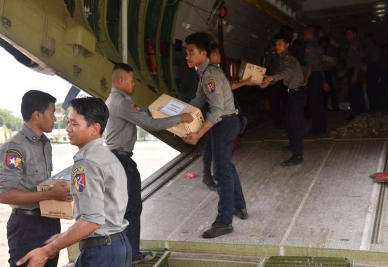 ရခိုင်ပြည်နယ်အတွင်းရှိ သဘာဝဘေးဒဏ်သင့်ပြည်သူများအတွက် ကူညီကယ်ဆယ်ရေးပစ္စည်းများ၊ ပြန်လည်ထူထောင်ရေးပစ္စည်းများနှင့် စားသောက်ဖွယ်ရာပစ္စည်းများကို တပ်မတော်ရေယာဉ်များ၊ လေယာဉ်/ရဟတ်ယာဉ်များ၊ မော်တော်ယာဉ်များဖြင့် နေ့စဉ်ပို့ဆောင်ပေးလျက်ရှိသည်။