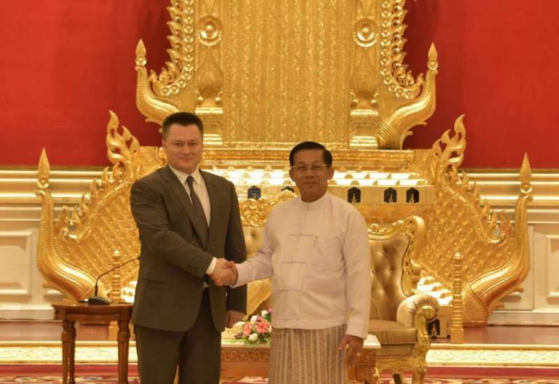 နိုင်ငံတော်စီမံအုပ်ချုပ်ရေးကောင်စီဥက္ကဋ္ဌ နိုင်ငံတော်ဝန်ကြီးချုပ် ဗိုလ်ချုပ်မှူးကြီး မင်းအောင်လှိုင် ရုရှားဖက်ဒေရေးရှင်းနိုင်ငံ၊ ရှေ့နေချုပ် H.E. Mr. Igor Krasnov ဦးဆောင်သည့် ကိုယ်စားလှယ်အဖွဲ့အား ယနေ့မွန်းလွဲပိုင်းတွင် နေပြည်တော်ရှိ နိုင်ငံတော်စီမံ အုပ်ချုပ်ရေး ကောင်စီဥက္ကဋ္ဌရုံး၊ သံတမန်ဆောင်ဧည့်ခန်းမ၌ လက်ခံတွေ့ဆုံသည်။