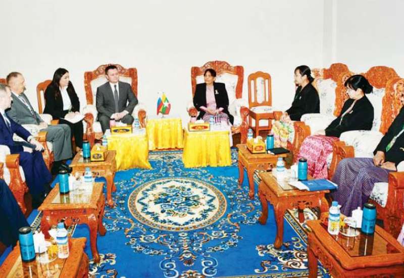 ဥပဒေရေးရာဝန်ကြီးဌာန ပြည်ထောင်စုဝန်ကြီးနှင့် ပြည်ထောင်စုရှေ့နေချုပ် ဒေါက်တာ သီတာဦးသည် ရုရှားဖက်ဒရေးရှင်းနိုင်ငံ ရှေ့နေချုပ် Mr.Igor KRASNOV ဦးဆောင်သော ကိုယ်စားလှယ်အဖွဲ့ကို ယနေ့ နံနက် ၉ နာရီခွဲတွင် နေပြည်တော်ရှိ ဥပဒေရေးရာဝန်ကြီးဌာန သံတမန်ခန်းမ၌ တွေ့ဆုံသည်။