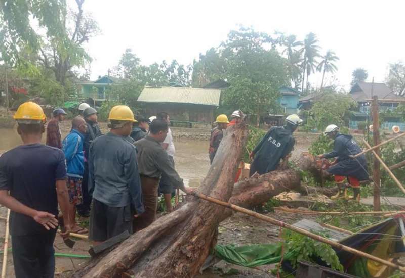 ရခိုင်ပြည်နယ်၊ မြောက်ဦးခရိုင်၊ မြောက်ဦးမြို့၌ အလွန့်အလွန်အားကောင်းသော ဆိုင်ကလုန်းမုန် တိုင်း(မိုခါ) တိုက်ခိုက်မှုကြောင့် သစ်ပင်၊ သစ်ကိုင်းများ၊ ဓာတ်တိုင်များ ကျိုးကျပျက်စီးရာမှ လမ်းပိတ်ဆို့မှုများမဖြစ်စေရန်အတွက် ဖယ်ရှားရှင်းလင်းခြင်းကို ယမန်နေ့နံနက် ၈ နာရီက တာဝန်ရှိသူများ ပူးပေါင်းအဖွဲ့က ကွင်းဆင်းဆောင်ရွက်ခဲ့ကြသည်။