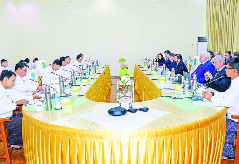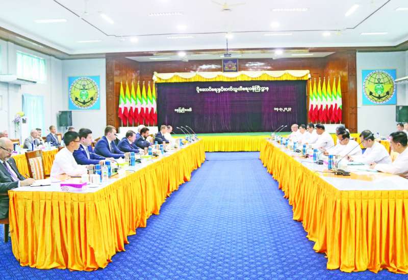 သယံဇာတနှင့်သဘာဝပတ်ဝန်းကျင်ထိန်းသိမ်းရေးဝန်ကြီးဌာန ပြည်ထောင်စုဝန်ကြီး ဦးခင်မောင်ရီသည် ရုရှားဖက်ဒရေးရှင်းနိုင်ငံ ရော့စ်ကွန်ဂရက် ရင်းနှီးမြှုပ်နှံမှုရန်ပုံငွေအဖွဲ့မှ ညွှန်ကြားရေးမှူး Mr. SHATIROV Alexander Sergeevich ဦးဆောင်သော ကိုယ်စားလှယ်အဖွဲ့ကို ယနေ့မွန်းလွဲ ၃ နာရီခွဲတွင် နေပြည်တော် ရုံးအမှတ်(၂၈) သယံဇာတနှင့်သဘာဝပတ်ဝန်းကျင် ထိန်းသိမ်းရေးဝန်ကြီးဌာန အစည်းအဝေးခန်းမ၌ လက်ခံတွေ့ဆုံသည်။