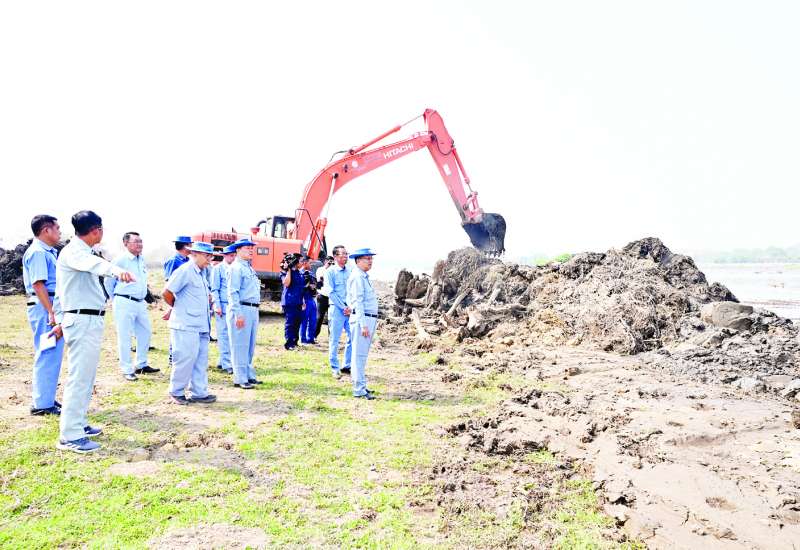 နေပြည်တော်ကောင်စီဥက္ကဋ္ဌ မြို့တော်ဝန် ဦးတင်ဦးလွင်သည် ဒုတိယမြို့တော်ဝန် ဦးမောင်မောင်၊ အမြဲတမ်းအတွင်းဝန်နှင့်အတူ ယနေ့နံနက်ပိုင်းက နိုင်ငံတော်ဝန်ကြီးချုပ်၏ လမ်းညွှန်မှာကြားချက်အရ သန့်ရှင်းသောသောက်သုံးရေများပေးဝေနိုင်ရေး ရန်အောင်မြင် ဆည်ရေပြင်နှင့်ဆည်ကြမ်းခင်းရှိ နုန်းများ၊ သစ်ဝါးဆွေးများနှင့်ရေညှိရေမှော်များ ဆယ်ယူရှင်းလင်းနေမှုကို ကြည့်ရှုစစ်ဆေးသည်။