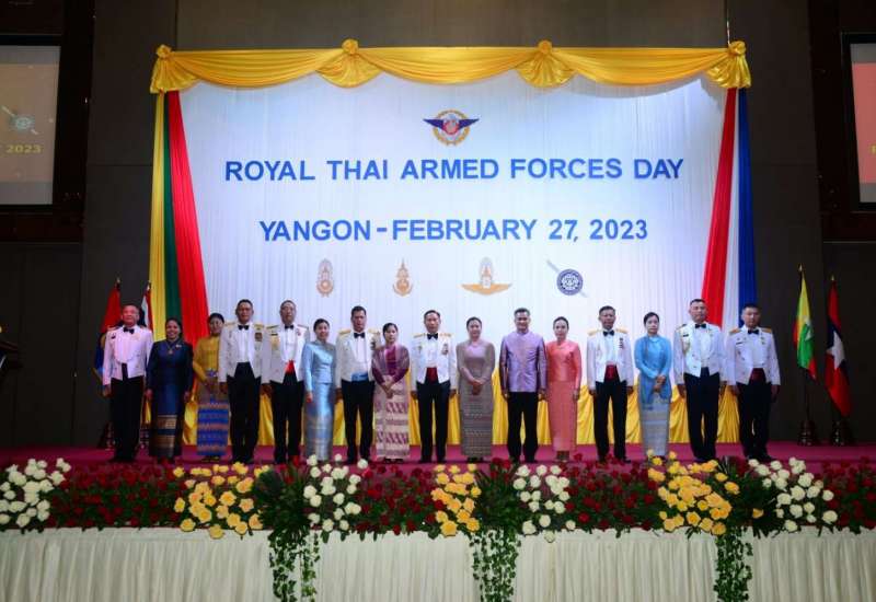 ထိုင်းဘုရင့်တပ်မတော်နေ့အထိမ်းအမှတ် ဧည့်ခံပွဲအခမ်းအနားကို ယနေ့ညပိုင်းတွင် ရန်ကုန်မြို့၊ ပြည်လမ်းရှိ နိုဗိုတယ်ဟိုတယ်၌ ကျင်းပသည်။