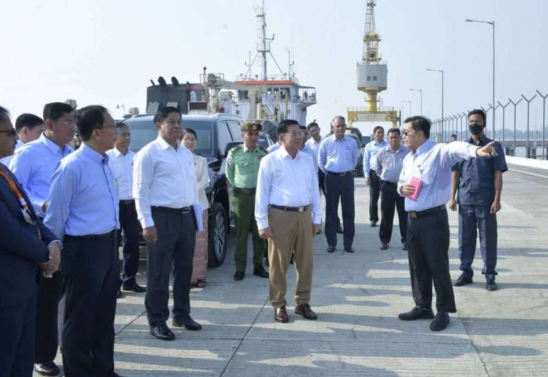 နိုင်ငံတော်စီမံအုပ်ချုပ်ရေးကောင်စီဥက္ကဋ္ဌ နိုင်ငံတော်ဝန်ကြီးချုပ် ဗိုလ်ချုပ်မှူးကြီးမင်းအောင်လှိုင်သည် ယနေ့နံနက်ပိုင်းတွင် ခရီးစဉ်တွင်လိုက်ပါလာသည့် အဖွဲ့ဝင်များ၊ ရခိုင်ပြည်နယ်ဝန်ကြီးချုပ် ဦးထိန်လင်း၊ အနောက်ပိုင်းတိုင်းစစ်ဌာနချုပ် တိုင်းမှူး ဗိုလ်ချုပ်ထင်လတ်ဦးနှင့် တာဝန်ရှိသူများလိုက်ပါပြီး ရခိုင်ပြည်နယ်၊ စစ်တွေမြို့ရှိ ကုလားတန်မြစ်ကြောင်း ဘက်စုံသုံးဖြတ်သန်းသယ်ယူပို့ဆောင်ရေးစီမံကိန်း အကောင်အထည်ဖော်ဆောင်ရွက်နေမှုအခြေအနေများကို သွားရောက်ကြည့်ရှုစစ်ဆေးသည်။