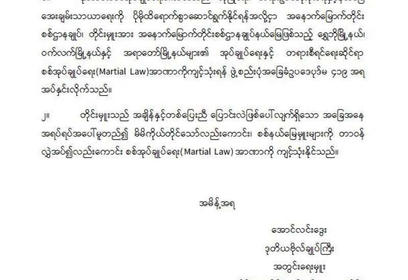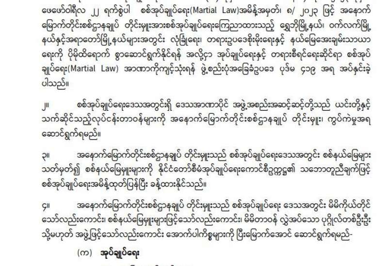 အကြမ်းဖက်အုပ်စုအဖြစ်ကြေညာထားသော CRPH၊ NUG နှင့် ယင်းတို့၏ လက်အောက်ခံ အဖွဲ့အစည်းများ၊ ယင်းတို့နှင့် ဆက်နွှယ်နေသော အဖွဲ့အစည်းများ၊ လူပုဂ္ဂိုလ်များသည် နိုင်ငံတော်တည်ငြိမ်အေးချမ်းရေးကို ပျက်ပြားစေရန်နှင့် ပြည်သူလူထုကို အကြောက် တရားများ ဖြစ်ပေါ်စေပြီး အစိုးရယန္တရားများ ပျက်ပြားစေရန် ရည်ရွယ်လျက် လှုံ့ဆော်ခြင်း၊ ဝါဒဖြန့်ခြင်း၊ ခြိမ်းခြောက်ခြင်းများကို လူမှုကွန်ရက်များမှတစ်ဆင့် နည်းမျိုးစုံဖြင့် ပြုလုပ်လျက် ရှိပါသည်။