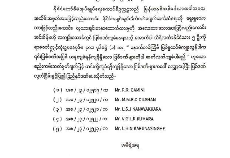 ရန်ကုန်မြို့နှင့် မန္တလေးမြို့အတွက် ရည်ညွှန်းလက်ကားဈေးနှုန်းများနှင့် ပြည်ထောင်စုနယ်မြေ နေပြည်တော်၊ တိုင်းဒေသကြီး/ ပြည်နယ် မြို့တော်များအတွက် ရည်ညွှန်းလက်လီဈေးနှုန်းများ