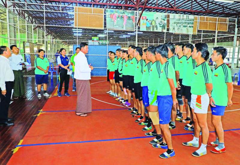 အားကစားနှင့် လူငယ်ရေးရာဝန်ကြီးဌာန ပြည်ထောင်စုဝန်ကြီး ဦးမင်းသိန်းဇံသည် အားကစားနှင့် ကာယပညာဦးစီးဌာန ညွှန်ကြားရေးမှူးချုပ် ဦးထွန်းမြင့်ဦးနှင့်အတူ ယနေ့ မွန်းလွဲ ၃ နာရီတွင် မေ ၅ ရက်မှ ၁၇ ရက်အထိ ကမ္ဘောဒီးယားနိုင်ငံ၌ အိမ်ရှင်အဖြစ် လက်ခံကျင်းပမည့် (၃၂) ကြိမ်မြောက် အရှေ့တောင်အာရှ အားကစားပြိုင်ပွဲ ဝင်ရောက် ယှဉ်ပြိုင်ရန်အတွက် နေပြည်တော်၌ စခန်းသွင်းလေ့ကျင့်လျက်ရှိသည့် မြန်မာ့လက်ရွေးစင် အားကစားအဖွဲ့များ၏ ကြိုတင်ပြင်ဆင်လေ့ကျင့်နေမှုကို ကြည့်ရှုစစ်ဆေးသည်။