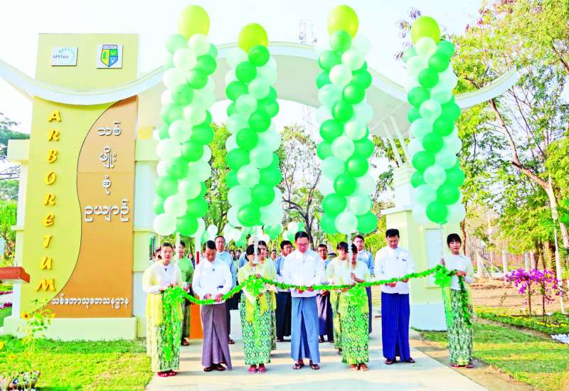 မဲခေါင်ဒေသ မြန်မာနိုင်ငံ၏ သစ်တောဂေဟစနစ်များအား ဘက်စုံစီမံအုပ်ချုပ်ခြင်း သရုပ်ပြစီမံကိန်း၏ ရန်ပုံငွေအထောက်အပံ့ဖြင့် ဆောင်ရွက်သည့် သစ်မျိုးစုံဥယျာဉ် အဝင်မုခ်ဦး ဖွင့်ပွဲအခမ်းအနားကို ယနေ့နံနက်ပိုင်းတွင် သစ်တောသုတေသနဌာန သစ်မျိုးစုံဥယျာဉ် ရေဆင်း၌ ကျင်းပသည်။
