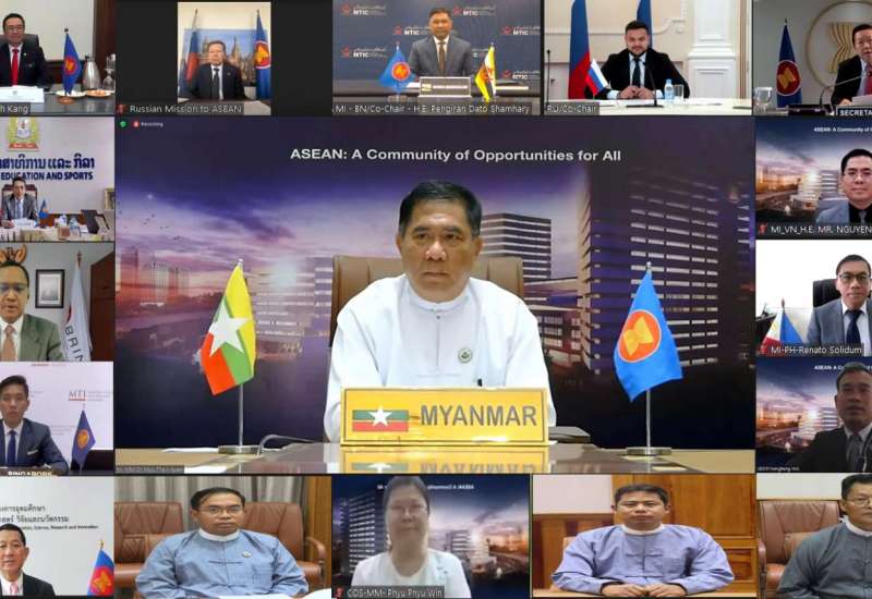 ရုရှားဖက်ဒရေးရှင်းနိုင်ငံမှ ကြီးမှူးကျင်းပသည့် သိပ္ပံ၊ နည်းပညာနှင့် တီထွင်ဆန်းသစ်မှုဆိုင်ရာ အာဆီယံ-ရုရှား ဝန်ကြီးများအစည်းအဝေးကို ယနေ့တွင် Virtual စနစ်ဖြင့်ကျင်းပရာ သိပ္ပံနှင့် နည်းပညာဝန်ကြီးဌာနမှ ပြည်ထောင်စုဝန်ကြီး ဒေါက်တာမျိုးသိန်းကျော် နေပြည်တော်မှ ပါဝင်တက်ရောက်သည်။