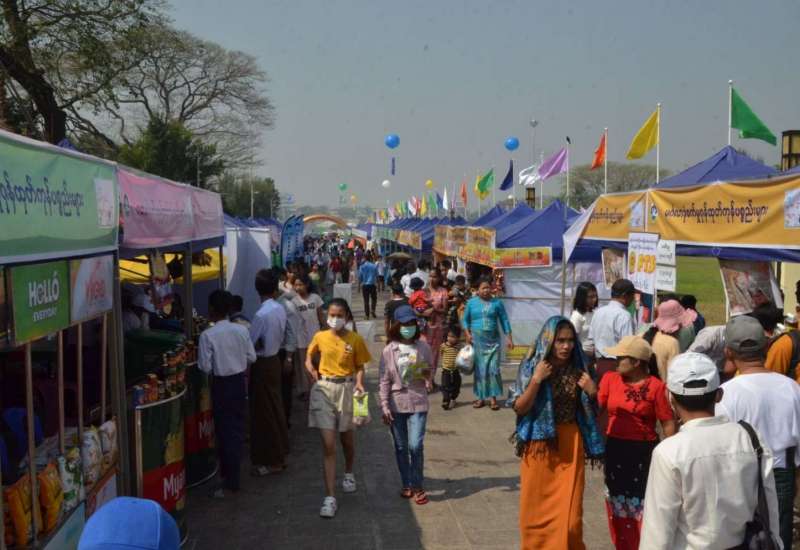 ရန်ကုန်မြို့ ဒဂုံမြို့နယ် ပြည်သူ့ရင်ပြင်တွင် စည်ကားသိုက်မြိုက်စွာ ကျင်းပနေသည့် (၇၆) နှစ်မြောက် ပြည်ထောင်စုနေ့အထိမ်းအမှတ် တိုင်းရင်းသားရိုးရာ ယဉ်ကျေးမှုပြခန်း၊ ရိုးရာအစားအစာနှင့် စက်မှုဇုန်ထုတ်ကုန်ပစ္စည်းများ ရောင်းချသည့် ပွဲတော်ကြီး။