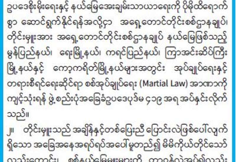 စစ်အုပ်ချုပ်ရေး(Martial Law) အမိန့်အမှတ်၊ ၁ / ၂၀၂၃ ထုတ်ပြန်