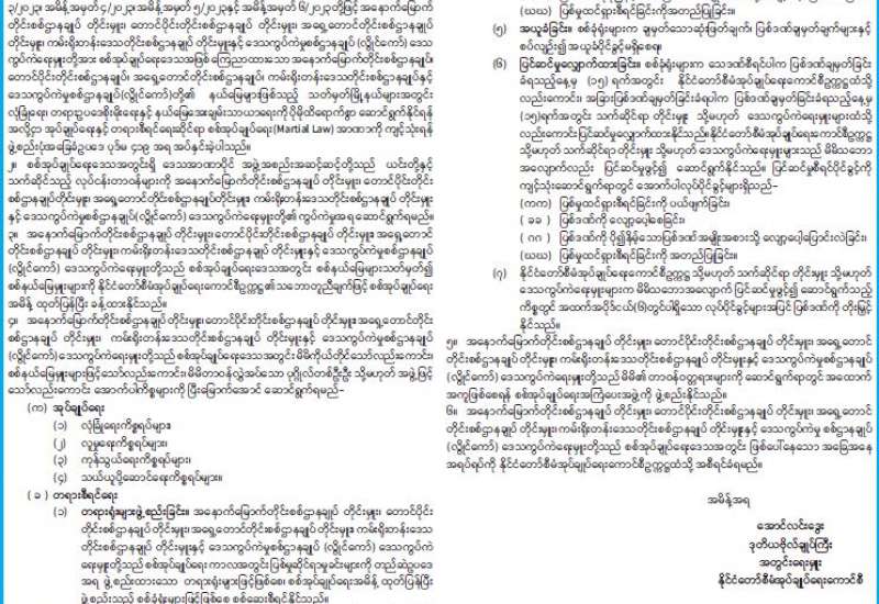 စစ်အုပ်ချုပ်ရေး (Martial Law) အမိန့်အမှတ်၊ ၇ /၂၀၂၃ ထုတ်ပြန်