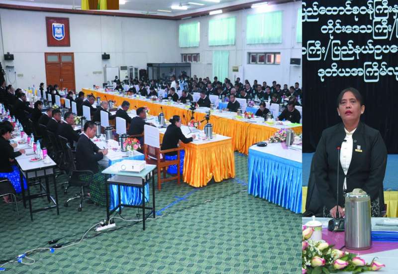 ပြည်ထောင်စုဝန်ကြီးနှင့် ပြည်ထောင်စုရှေ့နေချုပ်နှင့် တိုင်းဒေသကြီး/ ပြည်နယ်ဥပဒေချုပ်များ၊ တိုင်းဒေသကြီး/ ပြည်နယ်ဥပဒေအရာရှိများ၊ ခရိုင်ဥပဒေအရာရှိများ၏ ဒုတိယအကြိမ် လုပ်ငန်းသုံးသပ်ဆွေးနွေးပွဲကို ယနေ့နံနက်ပိုင်းက ဥပဒေရေးရာဝန်ကြီးဌာန၊ မြေညီထပ် အစည်းအဝေးခန်းမ၌ ကျင်းပသည်။