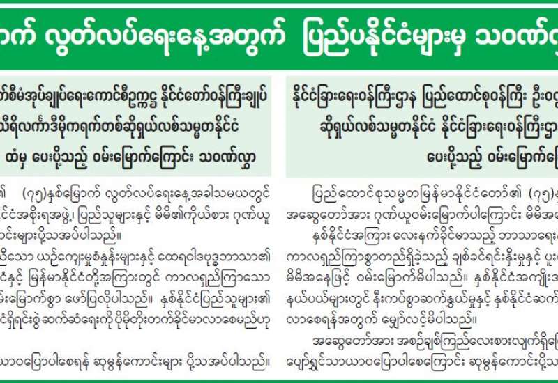 ၁။ မြန်မာနိုင်ငံ အမျိုးသား လူ့အခွင့်အရေး ကော်မရှင်သည် နိုင်ငံသားများ၏ လူ့အခွင့်အရေး ဖောက်ဖျက်ခံ ရမှုများနှင့်ပတ်သက်၍ တိုင်ကြားစာများကို လက်ခံလျက်ရှိပြီး ယင်းတိုင်ကြားစာများကို စိစစ်ခြင်း၊ စုံစမ်း စစ်ဆေးခြင်း၊ ညှိနှိုင်းဖြေရှင်းပေးခြင်းများနှင့် သက်ဆိုင်ရာဌာနများသို့ ဖြေရှင်းကုစားပေးရန် တိုက်တွန်းအကြံပြု ခြင်းများ ပြုလုပ်ဆောင်ရွက်ပေးလျက်ရှိပါသည်။