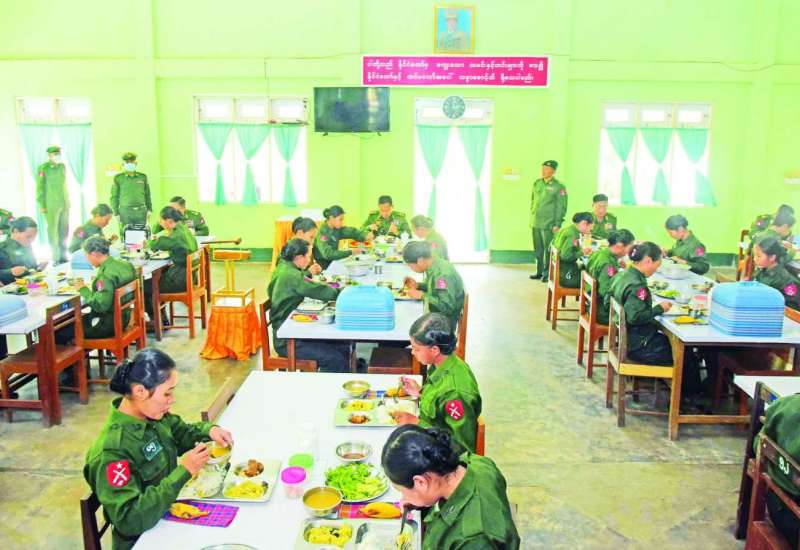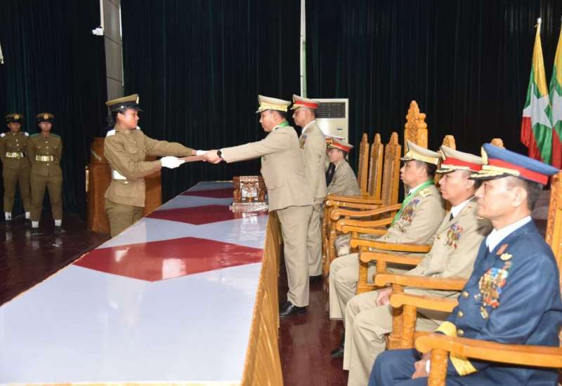 တပ်မတော်(ကြည်း)ဗိုလ်သင်တန်းကျောင်း(မှော်ဘီ) ဘွဲ့ရအမျိုးသမီးဗီုလ်လောင်း သင်တန်းအမှတ်စဉ်(၉) ပြန်တမ်းဝင်အရာရှိခန့်အပ်ခြင်းအခမ်းအနားကို ယနေ့နံနက်ပိုင်းတွင် တပ်မတော်(ကြည်း)ဗိုလ်သင်တန်းကျောင်း(မှော်ဘီ) မြဝတီခန်းမ၌ကျင်းပရာကာ ကွယ်ရေးဦးစီးချုပ်ရုံး(ကြည်း)မှ စစ်ရာထူးခန့်ချုပ် ဒုတိယဗိုလ်ချုပ်ကြီးလင်းအောင်၊ ကာကွယ်ရေးဦးစီးချုပ်ရုံးမှ တပ်မတော်အရာရှိကြီးများ တပ်မတော်(ကြည်း)ဗိုလ်သင်တန်းကျောင်း(မှော်ဘီ) ကျောင်းအုပ်ကြီး ဗိုလ်မှူးချုပ်မင်းမင်းစိုးနှင့် ကျောင်းဆင်းဗိုလ်လောင်းများ တက်ရောက်ကြသည်။