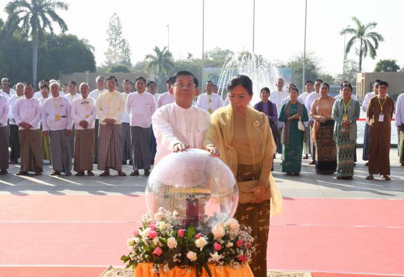 ၂၀၂၃ ခုနှစ် (၇၅) နှစ်မြောက် စိန်ရတုလွတ်လပ်ရေးနေ့ အထိမ်းအမှတ် လူငယ်နှင့်စာပေအနုပညာပြပွဲ အခမ်းအနားကို ယနေ့နံနက်ပိုင်းတွင် နေပြည်တော်ရှိ မြန်မာ အပြည်ပြည်ဆိုင်ရာ ကွန်ဗင်းရှင်းဗဟိုဌာန-၂ ၌ကျင်းပရာ နိုင်ငံတော်စီမံအုပ်ချုပ်ရေး ကောင်စီဥက္ကဋ္ဌ နိုင်ငံတော်ဝန်ကြီးချုပ် ဗိုလ်ချုပ်မှူးကြီး မင်းအောင်လှိုင်နှင့်ဇနီး ဒေါ်ကြူကြူလှတို့ တက်ရောက်ဖွင့်လှစ်ပေးသည်။