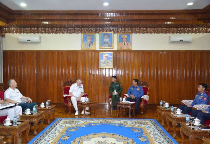 ကာကွယ်ရေးဦးစီးချုပ် (ရေ) ဗိုလ်ချုပ်ကြီးမိုးအောင်သည် ပြည်ထောင်စုသမ္မတ မြန်မာနိုင်ငံတော်သို့ရောက်ရှိနေသော ရုရှားဒုတိယရေတပ်ဦးစီးချုပ် Vice Admiral Igor MUKHAMETSHIN ဦးဆောင်သည့် ကိုယ်စားလှယ်အဖွဲ့အား ယနေ့နံနက်ပိုင်းတွင် ဧရာဝတီရေတပ်စခန်းဌာနချုပ် အရာရှိရိပ်သာ၌ လက်ခံတွေ့ဆုံသည်။