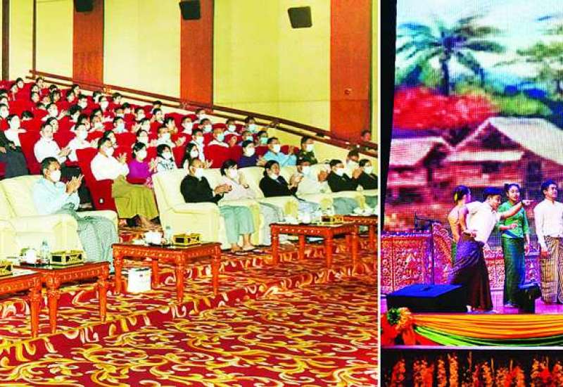 ၂၀၂၃ခုနှစ် (၇၅)နှစ်မြောက် စိန်ရတုလွတ်လပ်ရေးနေ့ကို ကြိုဆိုဂုဏ်ပြုသောအားဖြင့် နိုင်ငံကျော်အဆိုတော် မြန်မာပြည်သိန်းတန်၏ ကြယ်ကလေးများ၏ အနာဂတ်တစ်ကိုယ်တော်သီဆိုဖျော်ဖြေပွဲကို ယနေ့ညပိုင်းတွင် နေပြည်တော်ရှိ ဇေယျာသီရိဗိမာန် သဘင်ဆောင်အတွင်း၌ ကျင်းပပြုလုပ်ရာ နိုင်ငံတော်စီမံအုပ်ချုပ်ရေးကောင်စီဒုတိယဥက္ကဋ္ဌ ဒုတိယတပ်မတော်ကာကွယ်ရေးဦးစီးချုပ် ကာကွယ်ရေးဦးစီးချုပ်(ကြည်း) ဒုတိယဗိုလ်ချုပ်မှူးကြီး စိုးဝင်းတက်ရောက်ကြည့်ရှုအားပေးသည်။
