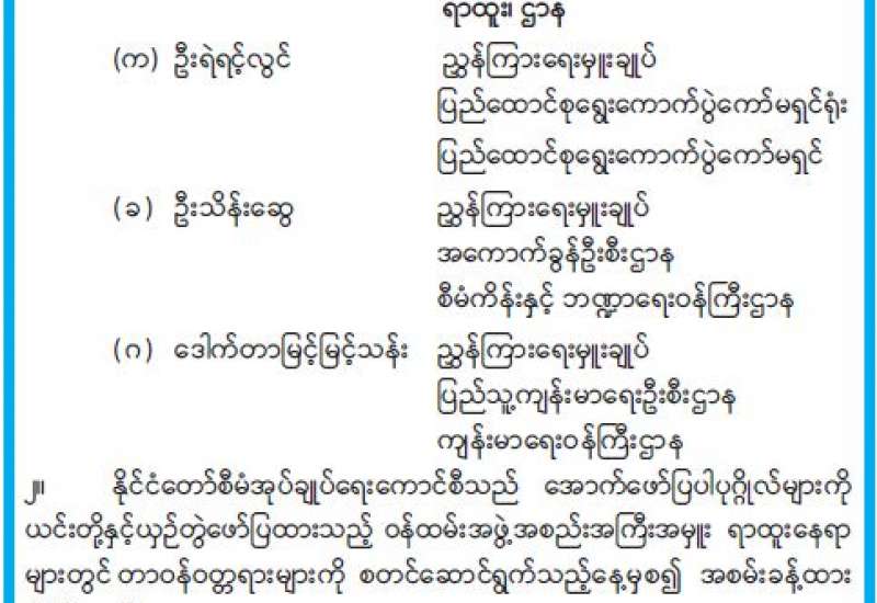 စားသုံးဆီဖူလုံရေးအတွက် ဆီထွက်သီးနှံများ တိုးချဲ့စိုက်ပျိုးရေးကော်မတီ၏ ဒုတိယအကြိမ် ညှိနှိုင်းအစည်းအဝေးကို ယနေ့နံနက်ပိုင်းက စိုက်ပျိုးရေး၊ မွေးမြူရေးနှင့် ဆည်မြောင်းဝန်ကြီးဌာန ပြည်ထောင်စုဝန်ကြီးရုံး အစည်းအဝေးခန်းမ၌ ကျင်းပသည်။