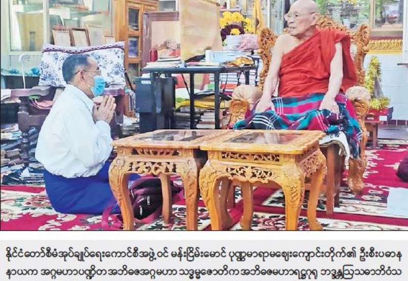 နိုင်ငံတော်စီမံအုပ်ချုပ်ရေးကောင်စီအဖွဲ့ဝင် မန်းငြိမ်းမောင်သည် ယနေ့နံနက်ပိုင်း က ဧရာဝတီတိုင်းဒေသကြီး မအူပင်ခရိုင် ညောင်တုန်းမြို့နယ်သို့ရောက်ရှိပြီး ညောင်တုန်းမြို့ အတုလမာရဇိန် ကြေးသွန်းဘုရားကြီးအား ဖူးမြော်ပူဇော်၍ ဗိုလ်ချုပ်လမ်းရှိ ပုဏ္ဏမာ ရာမဈေးကျောင်းတိုက်၏ ဦးစီးပဓာနနာယက အဂ္ဂမဟာပဏ္ဍိတအဘိဓဇအဂ္ဂမဟာ သဒ္ဓမ္မဇောတိက အဘိဓဇမဟာရဋ္ဌဂုရု ဘဒ္ဒန္တဩသဓာဘိဝံသအား ဖူးမြော်ကြည်ညိုကာ လှူဖွယ်ဝတ္ထုပစ္စည်းများ ဆက်ကပ်လှူဒါန်းသည်။