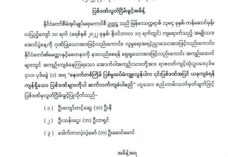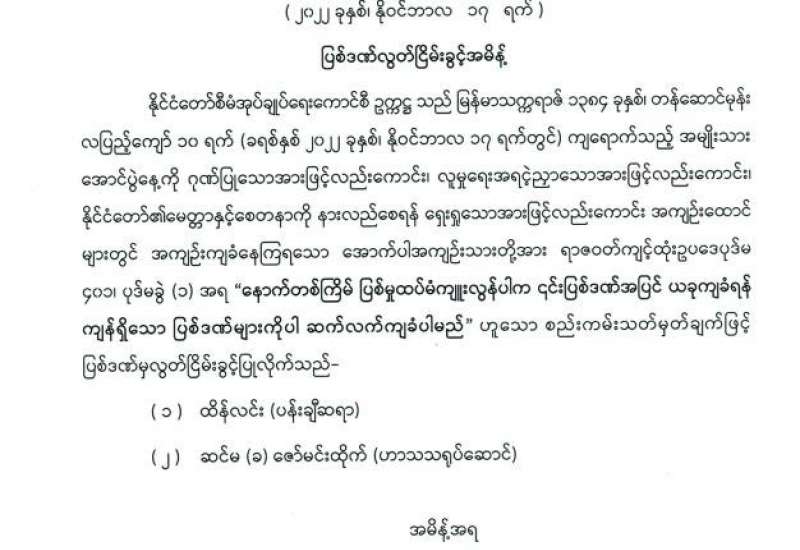 ပြစ်ဒဏ်လွတ်ငြိမ်းခွင့်အမိန့် အမိန့်အမှတ် ၇၂/၂၀၂၂