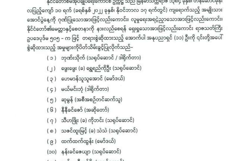 နိုင်ငံတော်စီမံအုပ်ချုပ်ရေးကောင်စီ အမိန့်ကြော်ငြာစာအမှတ် ၂၁၁/၂၀၂၂ ဂုဏ်ထူးဆောင်ဘွဲ့များ၊ ဂုဏ်ထူးဆောင်တံဆိပ်များ ချီးမြှင့်အပ်နှင်းခြင်း