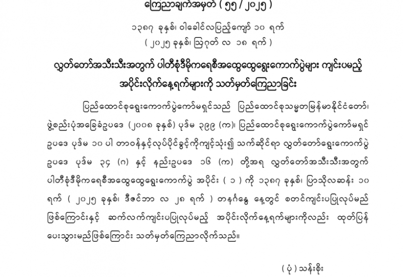 လွှတ်တော်အသီးသီးအတွက် ပါတီစုံဒီမိုကရေစီအထွေထွေရွေးကောက်ပွဲများ ကျင်းပမည့် အပိုင်းလိုက်နေ့ရက်များကို သတ်မှတ်ကြေညာခြင်း