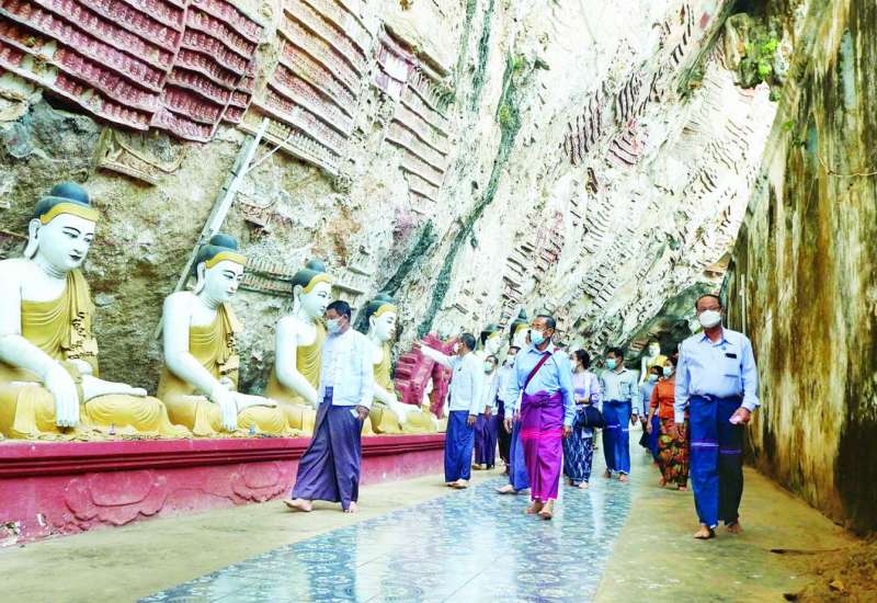 နိုင်ငံတော်စီမံအုပ်ချုပ်ရေးကောင်စီအဖွဲ့ဝင် မန်းငြိမ်းမောင်သည် ပြည်ထောင်စုဝန်ကြီးများဖြစ်ကြသည့် ဒုတိယဗိုလ်ချုပ်ကြီးထွန်းထွန်းနောင်၊ ဒေါက်တာပွင့်ဆန်း၊ ဦးမင်းသိန်းဇံနှင့် ဒေါက်တာသက်သက်ခိုင်၊ ကရင်ပြည်နယ်ဝန်ကြီးချုပ် ဦးစောမြင့်ဦးနှင့် တာဝန်ရှိသူများနှင့်အတူ ယမန်နေ့ညနေပိုင်းက ဘားအံမြို့နယ် ဘားကပ်ကျေးရွာအုပ်စုရှိ ရှေးဟောင်းသမိုင်းဝင် ကော့ဂွန်းဂူတော်ကြီးအတွင်းရှိ ရှေးဟောင်းအုတ်ခွက်ဘုရားများနှင့် ဗုဒ္ဓရုပ်ပွားတော်များအား ဖူးမြော်ကြည်ညိုပြီး ဂေါပကအဖွဲ့ထံ အလှူငွေများ ပေးအပ်လှူဒါန်းသည်။