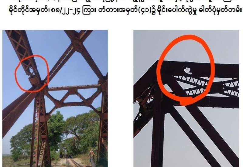 ပဲခူး - မော်လမြိုင်လမ်းပိုင်းရှိ မွန်ပြည်နယ်၊ မုပ္ပလင်ဘူတာနှင့် ကျိုက္ကသာဘူတာအကြား မိုင်တိုင်အမှတ်၊ ၈၈/၂၂-၂၄ ရှိ တံတားအမှတ် (၄၁)အားဇန်နဝါရီ ၂၆ ရက် နံနက် ၄ နာရီခန့်တွင် အကြမ်းဖက်သမားများက မိုင်းထောင်ဖောက်ခွဲခဲ့ရာ တံတားပျက်စီးခဲ့ပြီး မပေါက်ကွဲသေးသည့် လက်လုပ်မိုင်း(၁၀)လုံးကိုလည်း တွေ့ရှိရသဖြင့် မုပ္ပလင် - ကျိုက္ကသာ ရထားလမ်းပိုင်းအား နံနက်(၈) နာရီ(၅၀)မိနစ်တွင် ပိတ်ထားခဲ့ရကြောင်း သိရှိရသည်။