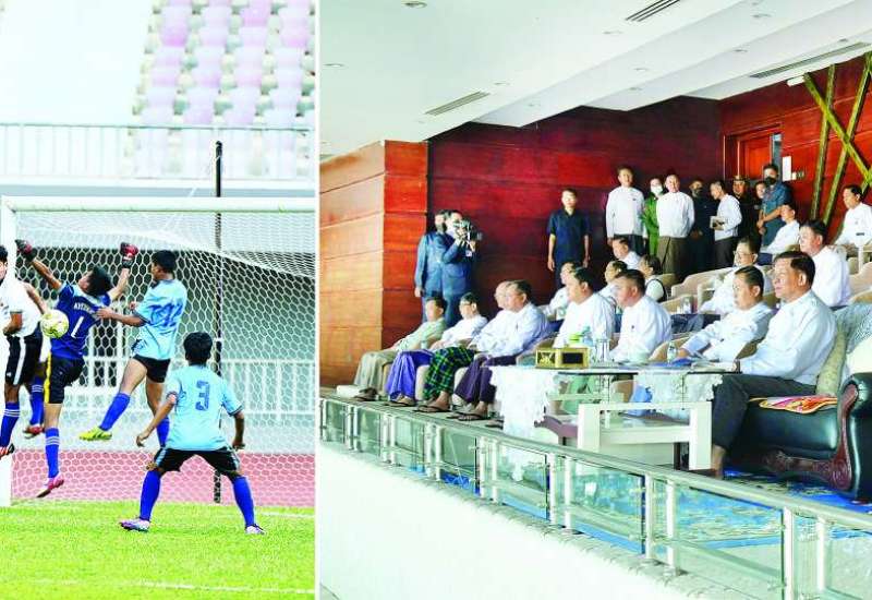 (၂၀၂၂-၂၀၂၃) ပညာသင်နှစ်၊ အခြေခံပညာကျောင်းသားအားကစားပွဲတော် ဘောလုံးပြိုင်ပွဲ(အမျိုးသား) ဗိုလ်လုပွဲနှင့် ဆုချီးမြှင့်ခြင်းအခမ်းအနားကို ယနေ့ညနေပိုင်းတွင် နေပြည်တော်ရှိ ဝဏ္ဏသိဒ္ဓိဘောလုံးကွင်း၌ကျင်းပရာ နိုင်ငံတော်စီမံအုပ်ချုပ်ရေးကောင်စီဥက္ကဋ္ဌ နိုင်ငံတော်ဝန်ကြီးချုပ် ဗိုလ်ချုပ်မှူးကြီးမင်းအောင်လှိုင် တက်ရောက်ကြည့်ရှုအားပေးပြီး ဆုများပေးအပ်ချီးမြှင့်သည်။