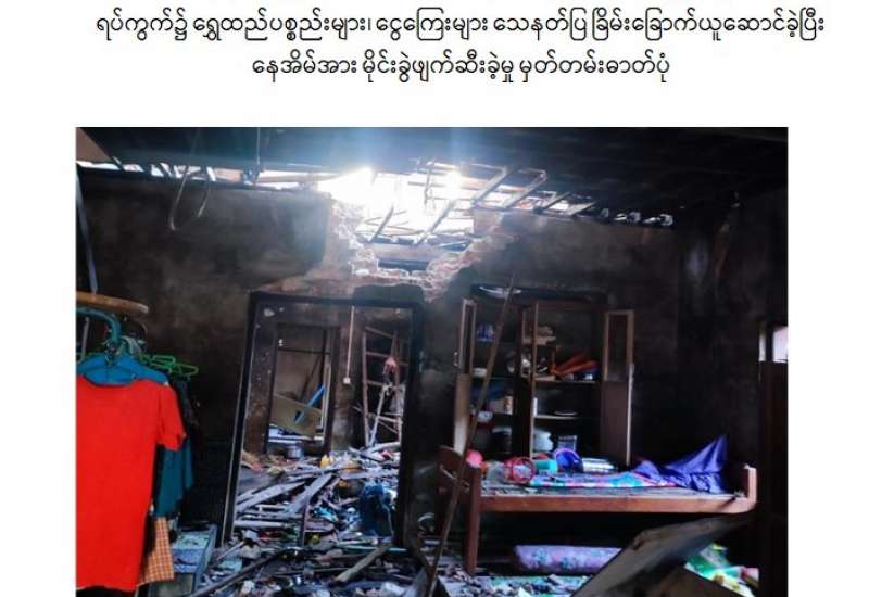 တနင်္သာရီတိုင်းဒေသကြီး၊ ပုလောမြို့နယ်၊ ပလမြို့၊ အမှတ်(၃)ရပ်ကွက်၊ ရပ်ကွက်အုပ်ချုပ်ရေးမှူးနေအိမ်မှ ရွှေထည်ပစ္စည်းမျိုးစုံ အလေးချိန် ၁၆ ကျပ် ၁ မတ်သားခန့်နှင့် ငွေကျပ်သိန်း ၃၀ ခန့်တို့အား PDF အမည်ခံအကြမ်းဖက်သမားများက သေနတ်ပြခြိမ်းခြောက်ယူဆောင်ပြီး နေအိမ်အား မိုင်းခွဲဖျက်ဆီးခဲ့ကြောင်း သိရှိရသည်။