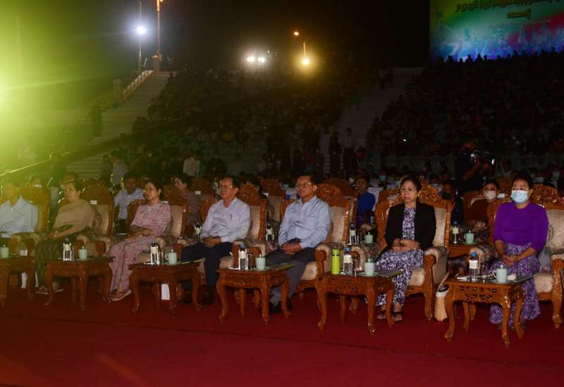 ၂၀၂၃ ခုနှစ် (၇၅)နှစ်မြောက် စိန်ရတုလွတ်လပ်ရေးနေ့ အထိမ်းအမှတ် ပဒေသာကပွဲ(ဒုတိယနေ့)ကို ယနေ့ညနေပိုင်းတွင် နေပြည်တော် မြို့တော်ခန်းမရှိ လဟာပြင် ကဇာတ်ရုံ၌ ကျင်းပရာ နိုင်ငံတော်စီမံအုပ်ချုပ်ရေးကောင်စီ ဒုတိယဥက္ကဋ္ဌ ဒုတိယဝန်ကြီးချုပ် ဒုတိယဗိုလ်ချုပ်မှူးကြီး စိုးဝင်း တက်ရောက် ကြည့်ရှုအားပေးသည်။