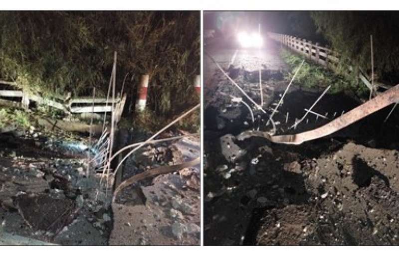 မွန်ပြည်နယ်၊ ရေးမြို့နယ်၌ နှင်းစုံတံတားအမှတ်(၁/၈၅) သံကူကွန်ကရစ်တံတားအား အကြမ်းဖက်သမားများက မိုင်းထောင်ဖောက်ခွဲဖျက်ဆီးခဲ့ကြောင်း သိရသည်။