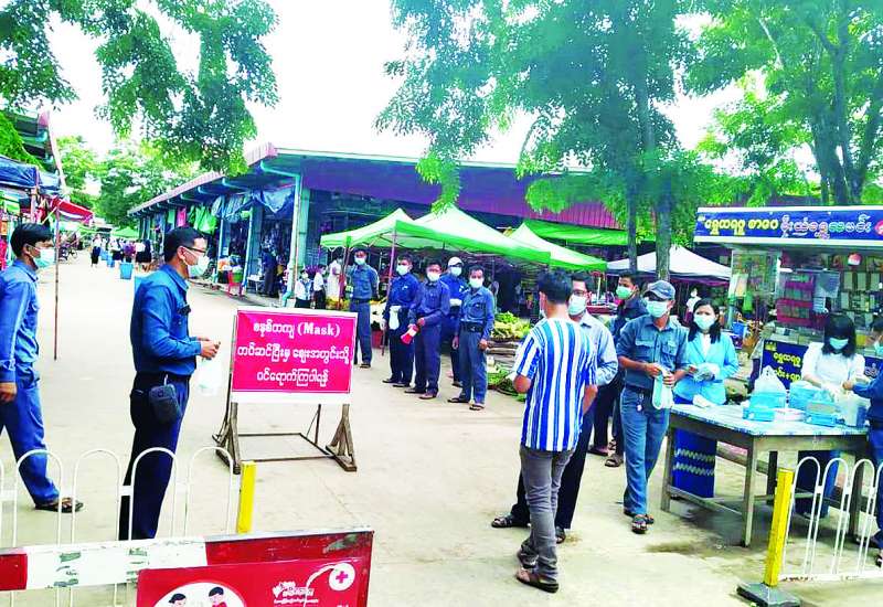ပြည်ထောင်စုနယ်မြေ နေပြည်တော်အတွင်းရှိ ဈေးများတွင် ကိုဗစ်-၁၉ ရောဂါ ကြိုတင်ကာကွယ်ရေးနှင့် ကူးစက်ပြန့်ပွားမှုမရှိစေရေး ထိန်းချုပ်နိုင်စေရန်အတွက် နေပြည်တော် စည်ပင်သာယာရေးကော်မတီ ဈေးများဌာနမှ တာဝန်ရှိသူများက ဈေးသူ ဈေးသားများနှင့် ဈေးဝယ် လာသူများထံ