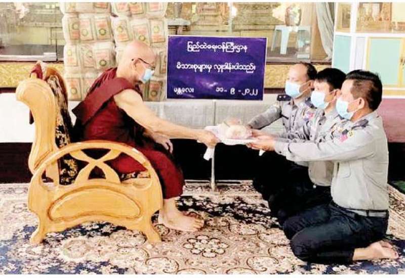 ပြည်ထဲရေးဝန်ကြီးဌာန တပ်ဖွဲ့ဝင်/ဝန်ထမ်း အရာထမ်း၊ အမှုထမ်းမိသားစုများက မြို့နယ်အသီးသီးရှိ ဘုန်းတော်ကြီးကျောင်းများသို့ ဆွမ်းဆန်တော်နှင့် ဆန်ကြာဆံများ ဆက်ကပ်လှူဒါန်းခြင်းကို ဆောင်ရွက်လျက်ရှိသည်။