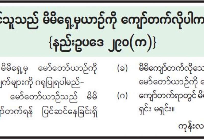 တရားမဝင်ကုန်သွယ်မှု တိုက်ဖျက်ရေးဦးဆောင်ကော်မတီ၏ ကြီးကြပ်ကွပ်ကဲမှုဖြင့် တရားမဝင် ကုန်သွယ်မှုများကို ဥပဒေနှင့်အညီ ထိရောက်စွာ တားဆီးအရေးယူနိုင်ရေး ဆောင်ရွက်လျက်ရှိရာ စက်တင်ဘာ ၇ရက်တွင် အကောက်ခွန်ဦးစီးဌာန၏ စီမံခန့်ခွဲမှုဖြင့် မွန်ပြည်နယ် မရမ်းချောင် အမြဲတမ်းစစ်ဆေးရေးစခန်းမှ တာဝန်ကျပူးပေါင်းအဖွဲ့က သတင်းအရ ရန်ကုန်-မြဝတီ လမ်းမကြီး မိုင်တိုင်အမှတ် ၉၇ မိုင် ၆ဖာလုံ ရွှေဖြူရော်ဘာခြံအနီး ရှောင်ကွင်းလမ်းထိပ်၌ စစ်ဆေးမှုများ ဆောင်ရွက်ခဲ့ရာ ရှောင်ကွင်းလမ်းအတွင်းမှ ထွက်ခွာလာသော Toyota Crown အမျိုးအစား လိုင်စင်မဲ့ယာဉ်တစ်စီး (ခန့်မှန်းတန်ဖိုးငွေကျပ် ၂၅၀၀၀၀၀၀) ကို သိမ်းဆည်းရမိခဲ့ပြီး အကောက်ခွန် လုပ်ထုံးလုပ်နည်းနှင့်အညီ အရေးယူဆောင်ရွက်လျက်ရှိသည်။