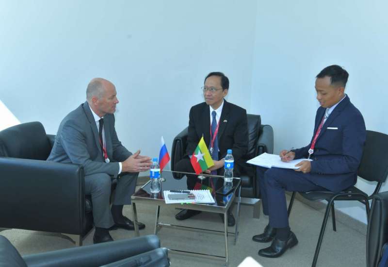 နိုင်ငံတော်စီမံအုပ်ချုပ်ရေးကောင်စီဥက္ကဋ္ဌ နိုင်ငံတော်ဝန်ကြီးချုပ် ဗိုလ်ချုပ်မှူးကြီး မင်းအောင်လှိုင်သည် ရုရှားဖက်ဒရေးရှင်းနိုင်ငံသို့သွားရောက်ပြီး ရုရှား-မြန်မာ မိတ်ဆွေညီအစ်ကို နိုင်ငံနှစ်ခုအကြား ပူးပေါင်းဆောင်ရွက်မှု ကဏ္ဍသစ်များဖွင့်လှစ် နိုင်ရေး ကြိုးပမ်း ဆောင်ရွက်လျက်ရှိသည်။ စက်တင်ဘာလ ၅ ရက်နေ့တွင် (၇)ကြိမ်မြောက် အရှေ့ဖျားစီးပွားရေးဖိုရမ် ဖွင့်ပွဲအခမ်းအနားသို့ တက်ရောက်ခဲ့ပြီးနောက် ပြည်ထောင်စုသမ္မတ မြန်မာနိုင်ငံတော် သိပ္ပံနှင့်နည်းပညာဝန်ကြီးဌာန၊ လျှပ်စစ်စွမ်းအားဝန်ကြီးဌာနတို့နှင့် ရုရှားနိုင်ငံပိုင် အဏုမြူကော်ပိုရေးရှင်းတို့အကြား ရှေ့ဆက်လက်ဆောင်ရွက်သွားမည့် လုပ်ငန်းစဉ်ဆိုင်ရာ သဘောတူညီမှု စာချွန်လွှာလက်မှတ်ရေးထိုးခဲ့ကြသည်။