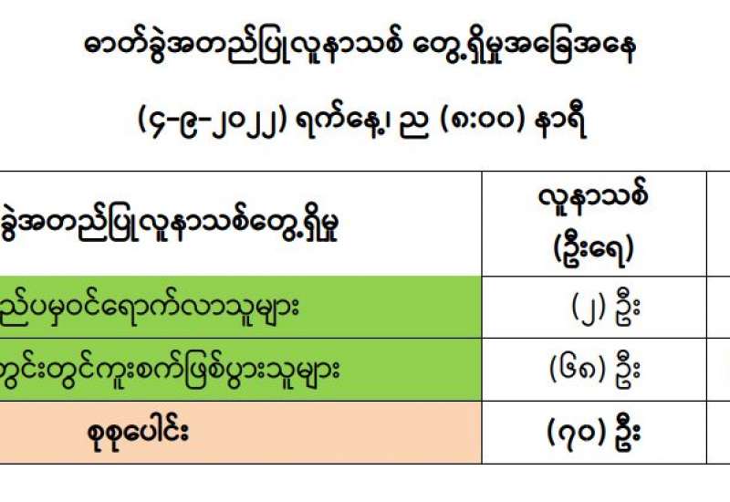 ကျန်းမာရေးဝန်ကြီးဌာနအနေဖြင့် နိုင်ငံအတွင်း ကူးစက်ဖြစ်ပွားနေသော COVID-19 ရောဂါ ကာကွယ်၊ ကုသ၊ ထိန်းချုပ်ရေးလုပ်ငန်းများကို အရှိန်အဟုန်မပြတ် ဆောင်ရွက်လျက်ရှိရာ ရောဂါထိန်းချုပ်ရေးလုပ်ငန်းများ အောင်မြင်နိုင်ရေးအတွက် ပြည်သူလူထုအနေဖြင့် ကျန်းမာရေးဝန်ကြီးဌာနမှ ထုတ်ပြန်ထားသော COVID-19 ရောဂါကာကွယ်ထိန်းချုပ်ရေးဆိုင်ရာ စည်းကမ်းများကို စနစ်တကျလိုက်နာဆောင်ရွက်ရန် လိုအပ်ပြီး COVID-19 ကာကွယ်ဆေးထိုးနှံမှု ခံယူခြင်းအား အထူးဂရုပြု ပူးပေါင်းဆောင်ရွက်ကြရန် လိုအပ်ပါသည်။