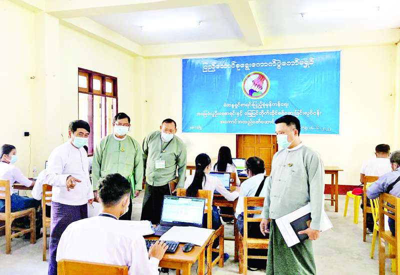 ပြည်ထောင်စုရွေးကောက်ပွဲကော်မရှင်ဥက္ကဋ္ဌ ဦးသိန်းစိုးသည် ပြည်ထောင်စုရွေးကောက်ပွဲ ကော်မရှင်အဖွဲ့ဝင်များ၊ တာဝန်ရှိသူများနှင့်အတူ ယနေ့နံနက်ပိုင်းတွင် ရန်ကုန်တိုင်းဒေသကြီး မင်္ဂလာဒုံမြို့နယ်ရှိ အထွေထွေအုပ်ချုပ်ရေးဦးစီးဌာန သင်တန်းကျောင်း၌ ဆောင်ရွက်လျက်ရှိသည့် မှော်ဘီမြို့နယ်နှင့် မင်္ဂလာဒုံ မြို့နယ်၏ မဲစာရင်းအခြေခံလူဦးရေစာရင်း မြေပြင်တိုက်ဆိုင် စစ်ဆေးခြင်းလုပ်ငန်း ဆောင်ရွက်နေမှုကိုလည်းကောင်း၊ သုဝဏ္ဏလူငယ်လေ့ကျင့်ရေးစင်တာ၌ ဆောင်ရွက်လျက်ရှိသည့် ရွှေပြည်သာမြို့နယ်နှင့် ဒဂုံမြို့သစ် (တောင်ပိုင်း) မြို့နယ်၏ မဲစာရင်းအခြေခံလူဦးရေစာရင်း မြေပြင်တိုက်ဆိုင်စစ်ဆေးခြင်း လုပ်ငန်း ဆောင်ရွက်နေမှုကို လည်းကောင်း သွားရောက်ကြည့်ရှုအားပေးပြီး တာဝန်ရှိသူများအား လိုအပ်သည်များ မှာကြားသည်။