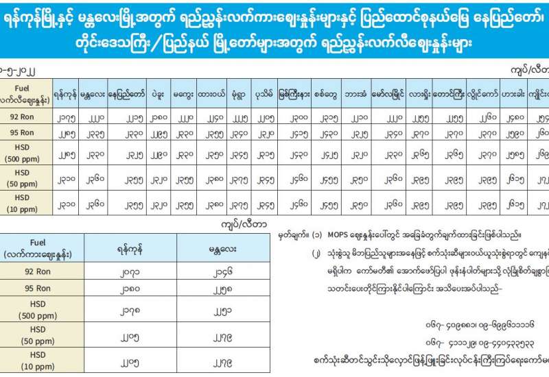 စီးပွားရေးနှင့်ကူးသန်းရောင်းဝယ်ရေးဝန်ကြီးဌာန၊ စားသုံးဆီ တင်သွင်း သိုလှောင် ဖြန့်ဖြူးခြင်း လုပ်ငန်းကြီးကြပ်ရေးကော်မတီအနေဖြင့် စားအုန်းဆီ ကမ္ဘာ့ဈေးနှုန်းဖြစ်ပေါ်ပြောင်းလဲမှုနှင့်အညီ ပြည်တွင်း၌ ဖြစ်သင့်ဖြစ်ထိုက်သည့် ဈေးနှုန်းများဖြစ်ပေါ်စေရေး ထိန်းကျောင်းဆောင်ရွက်လျက်ရှိပြီး စားအုန်းဆီ အဓိကထုတ်လုပ်တင်ပို့သည့် မလေးရှားနိုင်ငံနှင့် အင်ဒိုနီးရှားနိုင်ငံတို့တွင် ဖြစ်ပေါ်နေသည့် FOB ဈေးနှုန်းများကို နေ့စဉ်စောင့်ကြည့်ကာ သယ်ယူပို့ဆောင်ခကုန်ကျစရိတ်များ၊ ဘဏ်စရိတ်များ၊ အခွန်အခများ ထည့်သွင်းတွက်ချက်၍ ပြည်တွင်းဈေးကွက်၌ ရောင်းဝယ်ဖောက်ကားရမည့် အခြေခံလက်ကားရည်ညွှန်းဈေးနှုန်း ကိုထုတ်ပြန်ပေးလျက်ရှိပါသည်။