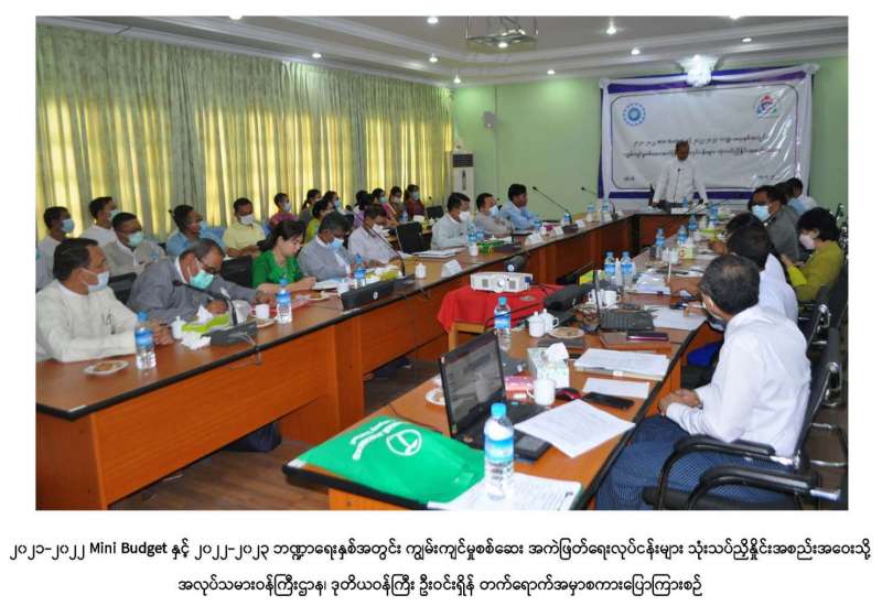 “၂၀၂၁-၂၀၂၂ Mini Budget နှင့် ၂၀၂၂-၂၀၂၃ ဘဏ္ဍာရေးနှစ်အတွင်း ကျွမ်းကျင်မှု စစ်ဆေးအကဲဖြတ်ရေးလုပ်ငန်းများ သုံးသပ်ညှိနှိုင်းအစည်းအဝေး” ကို ယနေ့နံနက်ပိုင်းတွင် ရန်ကုန် မြို့ရှိ ကျွမ်းကျင်မှုလေ့ကျင့်ရေးသင်တန်းကျောင်း (ရန်ကင်း)၌ ကိုဗစ်-၁၉ ရောဂါဆိုင်ရာ ထုတ်ပြန်ထားသော စည်းကမ်းချက်များနှင့်အညီ ကျင်းပသည်။