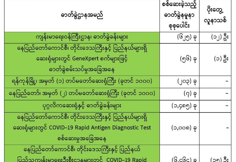 ကျန်းမာရေးဝန်ကြီးဌာနအနေဖြင့် နိုင်ငံအတွင်း ကူးစက်ဖြစ်ပွားနေသော COVID-19 ရောဂါ ကာကွယ်၊ ကုသ၊ ထိန်းချုပ်ရေးလုပ်ငန်းများကို အရှိန်အဟုန်မပြတ် ဆောင်ရွက်လျက်ရှိပါသည်။