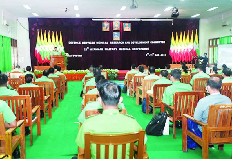 (၂၉) ကြိမ်မြောက် မြန်မာ့တပ်မတော် ဆေးပညာရပ်ဆိုင်ရာ နှီးနှောဖလှယ်ပွဲဖွင့်ပွဲကို ယနေ့နံနက်ပိုင်းတွင် နေပြည်တော်ရှိ တပ်မတော်ဆေးရုံကြီး (ခုတင်- ၁၀၀၀)နှင့် ရန်ကုန်တိုင်းဒေသကြီး မင်္ဂလာဒုံမြို့နယ်ရှိ တပ်မတော် အရိုးရောဂါအထူးကုဆေးရုံကြီး (ခုတင်-၅၀၀) တို့၌ Online Hybrid စနစ်ဖြင့် တစ်ပြိုင်နက်တည်း ကျင်းပရာ ကာကွယ်ရေးဦးစီးချုပ်ရုံး (ကြည်း) မှ စစ်ရေးချုပ် ဒုတိယဗိုလ်ချုပ်ကြီး မျိုးဇော်သိန်း၊ ရန်ကုန်တိုင်းစစ်ဌာနချုပ်တိုင်းမှူး ဗိုလ်ချုပ် ညွန့်ဝင်းဆွေ၊ တပ်မတော်ဆေးသုတေသနနှင့် ဖွံ့ဖြိုးတိုးတက်ရေး ကော်မတီဥက္ကဋ္ဌ၊ ဆေးဝန်ထမ်းညွှန်ကြားရေးမှူးရုံး ညွှန်ကြားရေးမှူး ဗိုလ်ချုပ် ကိုကိုလွင်၊ တပ်မတော် အရာရှိကြီးများ၊ ပါရဂူများ၊ နိုင်ငံတကာမှ ဆေးပညာရှင်များ၊ ဖိတ်ကြားထားသူများနှင့် စိတ်ပါဝင်စားသူများ တက်ရောက်ကြသည်။