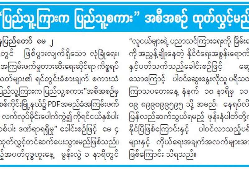 ပြည်သူ့ကြားက ပြည်သူ့စကား အစီအစဉ် ထုတ်လွှင့်မည်