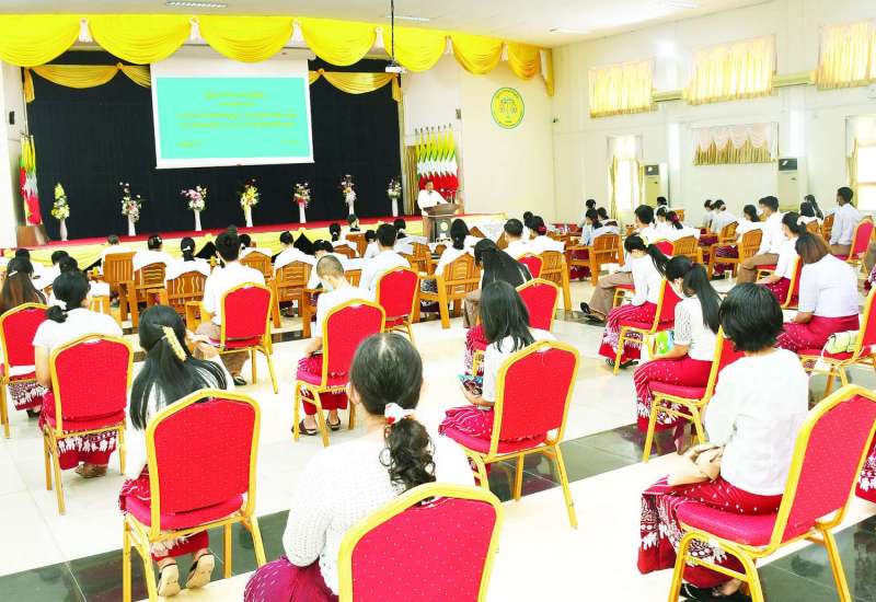 လက်ထောက်စာရင်းစစ်မှူးများ လုပ်ငန်းခွင်ဝင် ကျွမ်းကျင်မှုသင်တန်းအမှတ်စဉ် - ၁/၂၀၂၂ သင်တန်းဖွင့်ပွဲ အခမ်းအနားကို ယနေ့နံနက် ၉ နာရီခွဲက ကိုဗစ်-၁၉ ရောဂါဆိုင်ရာ ထုတ်ပြန်ထားသော စည်းကမ်းသတ်မှတ်ချက်များနှင့်အညီ ပြည်ထောင်စု စာရင်းစစ်ချုပ်ရုံး (နေပြည်တော်) စုပေါင်းခန်းမ၌ ကျင်းပသည်။