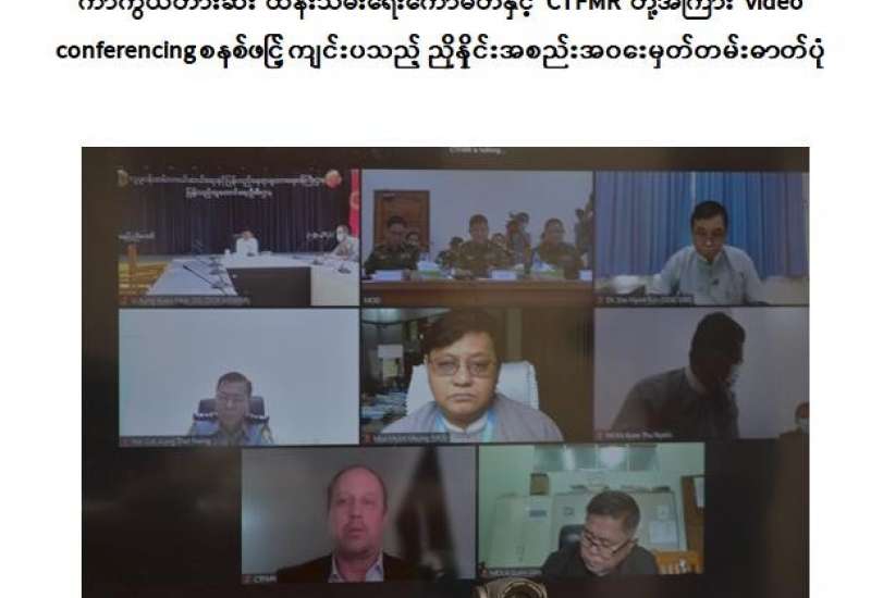 အရွယ်မရောက်သေးသူ ကလေးသူငယ်များအား စစ်မှုထမ်းဆောင်ခြင်းမှ ကာကွယ်တားဆီးထိန်းသိမ်းရေး ကော်မတီနှင့် The Country Task Force on Monitoring and Reporting - CTFMR တို့၏ ညှိနှိုင်းအစည်းအဝေးကို ယနေ့ နံနက်ပိုင်းတွင် ကာကွယ်ရေးဝန်ကြီးဌာန၊ ပြည်ထောင်စုဝန်ကြီးရုံး၊ အစည်းအဝေးခန်းမ၌ video conferencing စနစ်ဖြင့် ကျင်းပခဲ့ပါသည်။