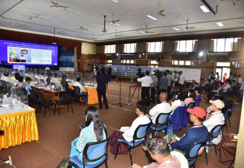 နိုင်ငံတော်စီမံအုပ်ချုပ်ရေးကောင်စီ၊ သတင်းထုတ်ပြန်ရေးအဖွဲ့၏ (၁၃)ကြိမ်မြောက် သတင်းစာရှင်းလင်းပွဲကို ယနေ့နေ့လယ်ပိုင်းတွင် ပြန်ကြားရေးဝန်ကြီးဌာန၌ ကျင်းပပြုလုပ်ရာ နိုင်ငံတော်စီမံအုပ်ချုပ်ရေးကောင်စီ၊ သတင်းထုတ်ပြန်ရေး အဖွဲ့ခေါင်းဆောင် ဗိုလ်ချုပ် ဇော်မင်းထွန်း၊ ပြည်ထောင်စုရွေးကောက်ပွဲကော်မရှင် အဖွဲ့ဝင် ဦးခင်မောင်ဦး၊ ဌာနဆိုင်ရာများမှ ပြောရေးဆိုခွင့်ရှိသူများနှင့် ဌာနဆိုင်ရာ သတင်းထုတ်ပြန်ရေးအဖွဲ့ ကိုယ်စားလှယ်များက သတင်းမီဒီယာများ၏ သိရှိလိုသည့် မေးမြန်းမှုများကို ပြန်လည်ဖြေကြားသည်။