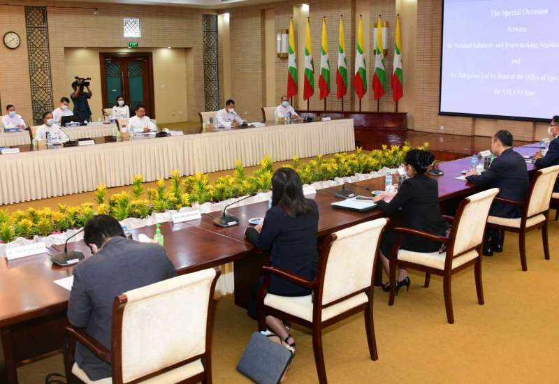 “AHA Centre မှ တစ်ဆင့် လှူဒါန်းမည့် လူသားချင်းစာနာထောက်ထားမှုဆိုင်ရာ အကူအညီစီမံခန့်ခွဲရေးဆိုင်ရာ မြန်မာလုပ်ငန်းအဖွဲ့ (Task Force)” အဖွဲ့ဝင်များ ဖြစ်ကြသည့် နိုင်ငံခြားရေးဝန်ကြီးဌာန ဒုတိယဝန်ကြီး ဦးကျော်မျိုးထွဋ်၊ ကျန်းမာရေး ဝန်ကြီးဌာန၊ ဒုတိယဝန်ကြီး ဒေါက်တာအေးထွန်းနှင့် လူမှုဝန်ထမ်း၊ ကယ်ဆယ်ရေးနှင့် ပြန်လည်နေရာချထား ရေးဝန်ကြီးဌာန ဒုတိယဝန်ကြီး ဦးအောင်ထွန်းခိုင်တို့သည် ကမ္ဘောဒီးယားနိုင်ငံခြားရေးနှင့် အပြည်ပြည်ဆိုင်ရာ ပူးပေါင်းဆောင်ရွက်ရေးဝန်ကြီးဌာန၊ ဒုတိယဝန်ကြီးနှင့် အာဆီယံဥက္ကဋ္ဌ၏ အထူးကိုယ်စားလှယ် ရုံးအဖွဲ့ခေါင်းဆောင် H.E. Dr. KUNG Phoak ဦးဆောင်သည့် ကမ္ဘောဒီးယားကိုယ်စားလှယ်အဖွဲ့နှင့် ယနေ့တွင် နေပြည်တော်ရှိ နိုင်ငံခြားရေးဝန်ကြီးဌာန၌ တွေ့ဆုံဆွေးနွေးသည်။